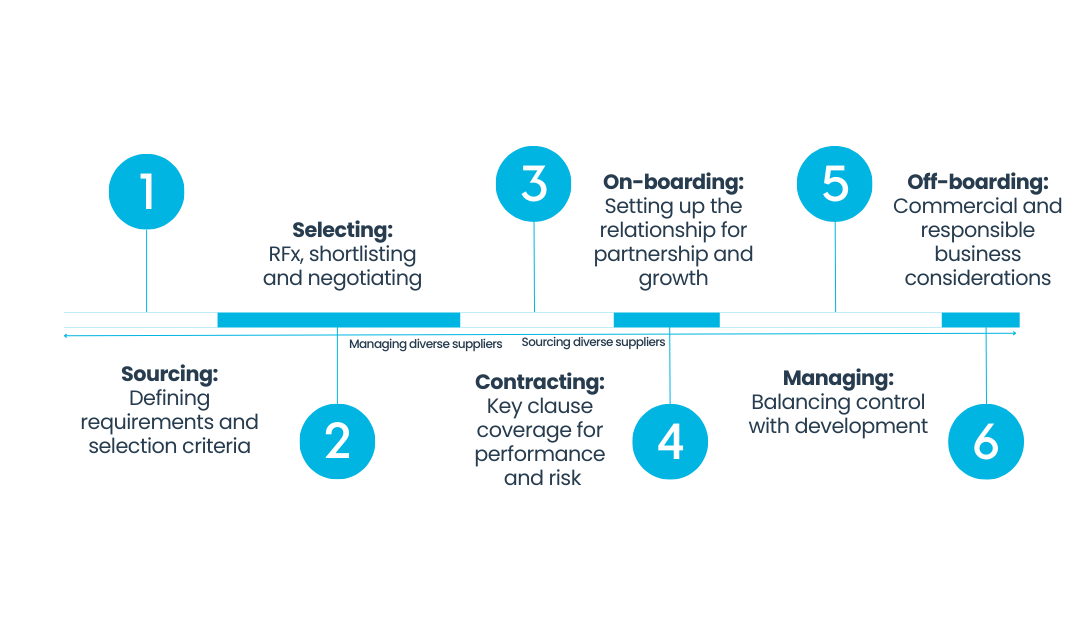 Part 3: Managing diverse suppliers: Conducting onboarding and management in a way that nurtures the value that diversity brings to the business-to-business relationship. Implement off-boarding in a way that considers and protects both parties' short- and longer-term interests.